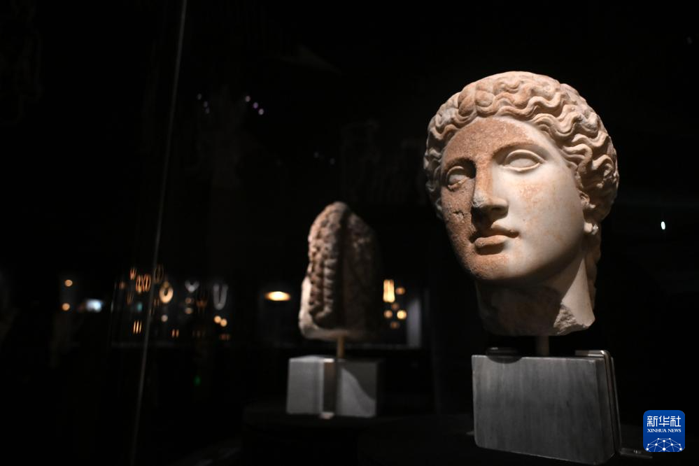这是展览展出的大理石年轻女性头像(11月5日摄)。
