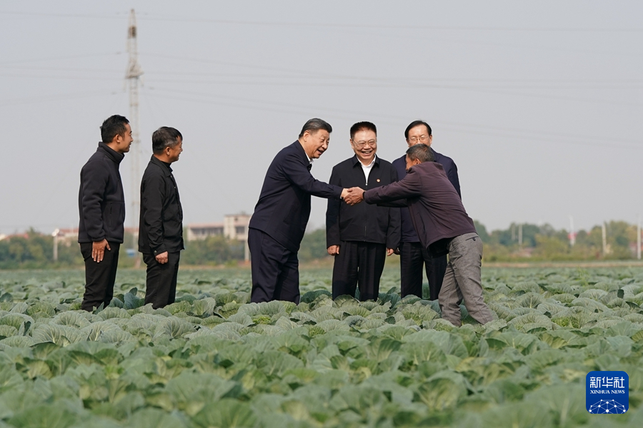 11月4日至6日,中共中央总书记、国家主席、中央军委主席习近平在湖北考察。这是5日上午,习近平在咸宁市嘉鱼县潘家湾镇四邑村考察时,同村民们亲切交流。
