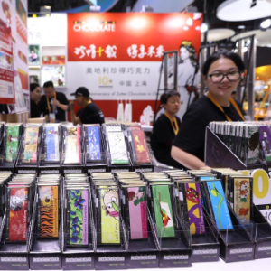11月6日在第七届进博会食品及农产品展区拍摄的奥地利巧克力。