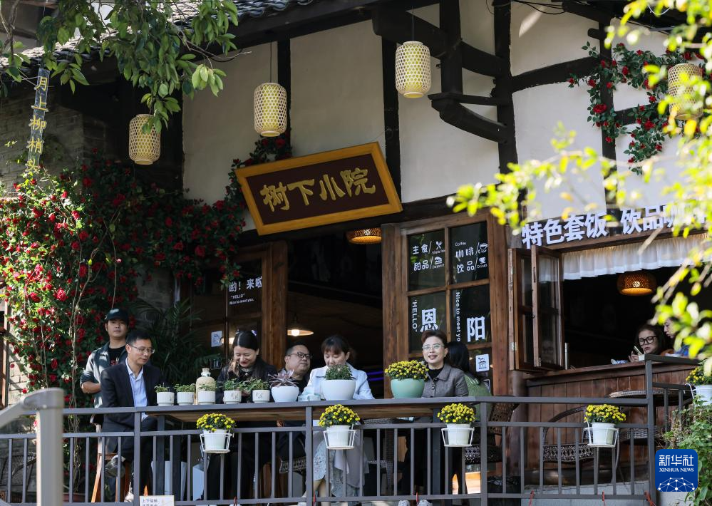 11月5日,游客在恩阳古镇一家咖啡馆消遣。