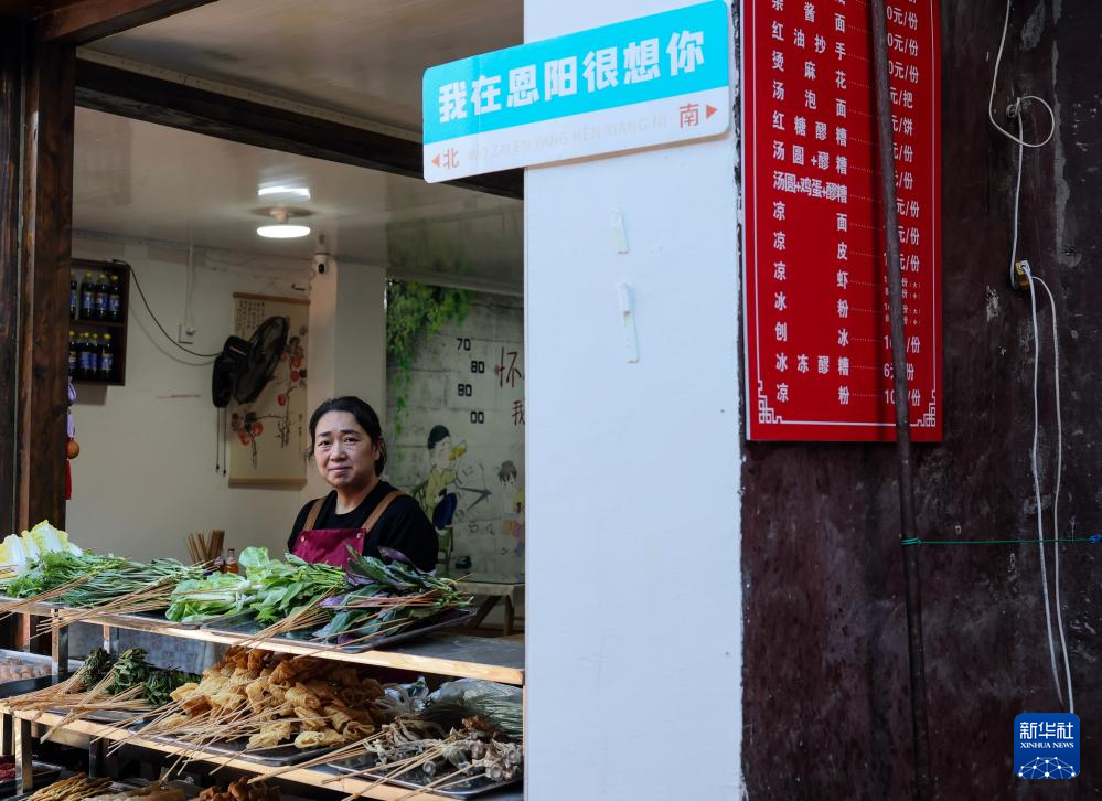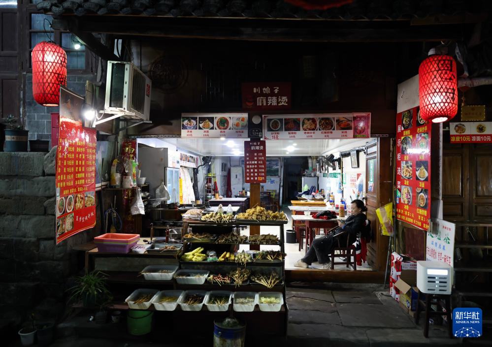 11月4日拍摄的恩阳古镇一家麻辣烫店铺。