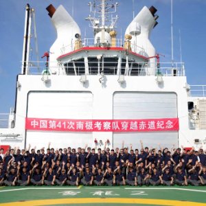 北京时间11月6日8时50分,正在执行中国第41次南极考察任务的“雪龙2”号穿越赤道进入南半球。此前,“雪龙”号已于5日驶过赤道。考察队在“雪龙”号和“雪龙2”号分别举行了穿越赤道纪念活动,以简单而热烈方式告别北半球,继续向南极挺进。