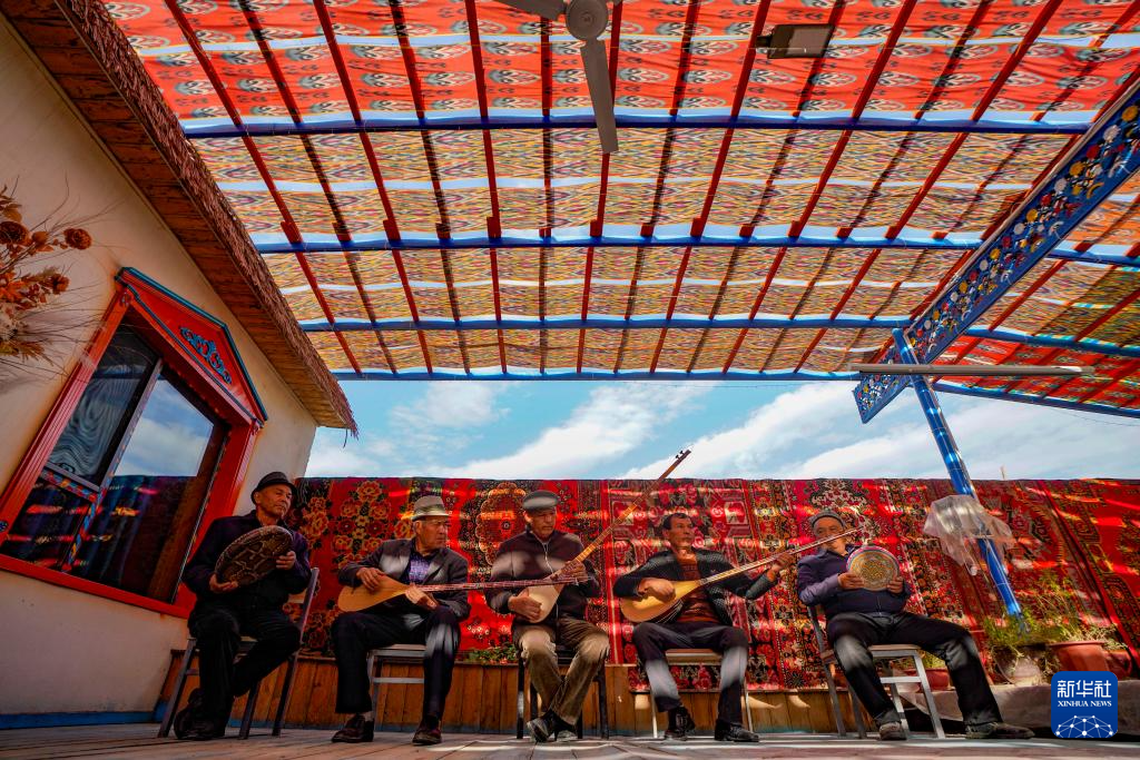 加依村乐器制作历史悠久,被誉为“新疆民间手工乐器制作第一村”。走在加依村,随处可见与乐器有关的壁画和装饰物。村内设有乐器展示中心,迎接各地宾朋。村民在农忙之余,约三五好友相聚,合奏一曲,或慷慨激越,或婉转低回,大家翩跹起舞,脸上洋溢着幸福的微笑。