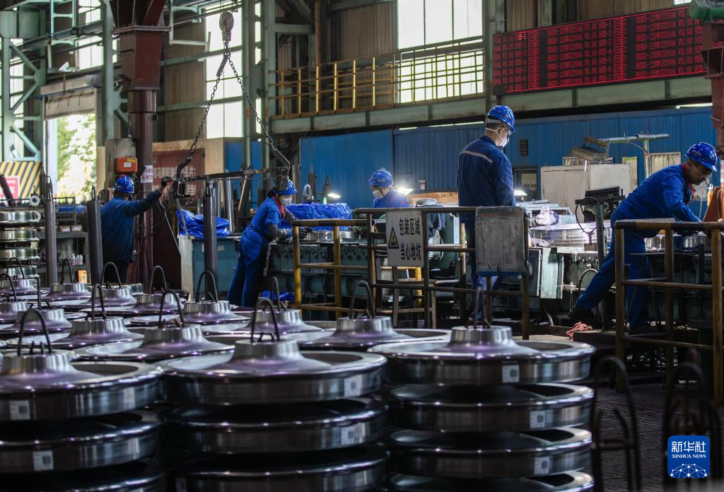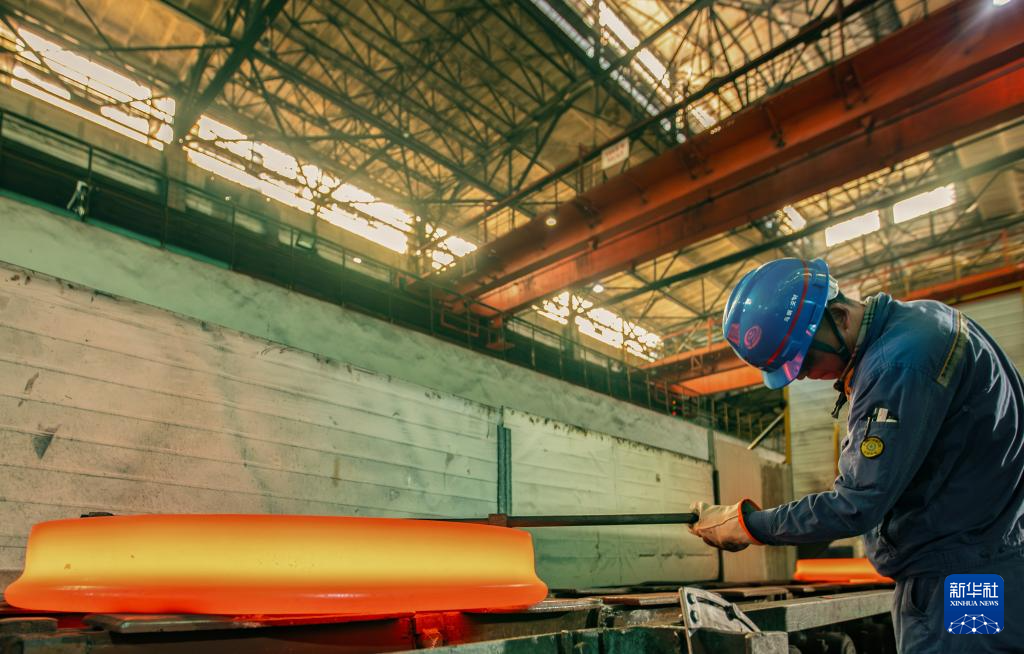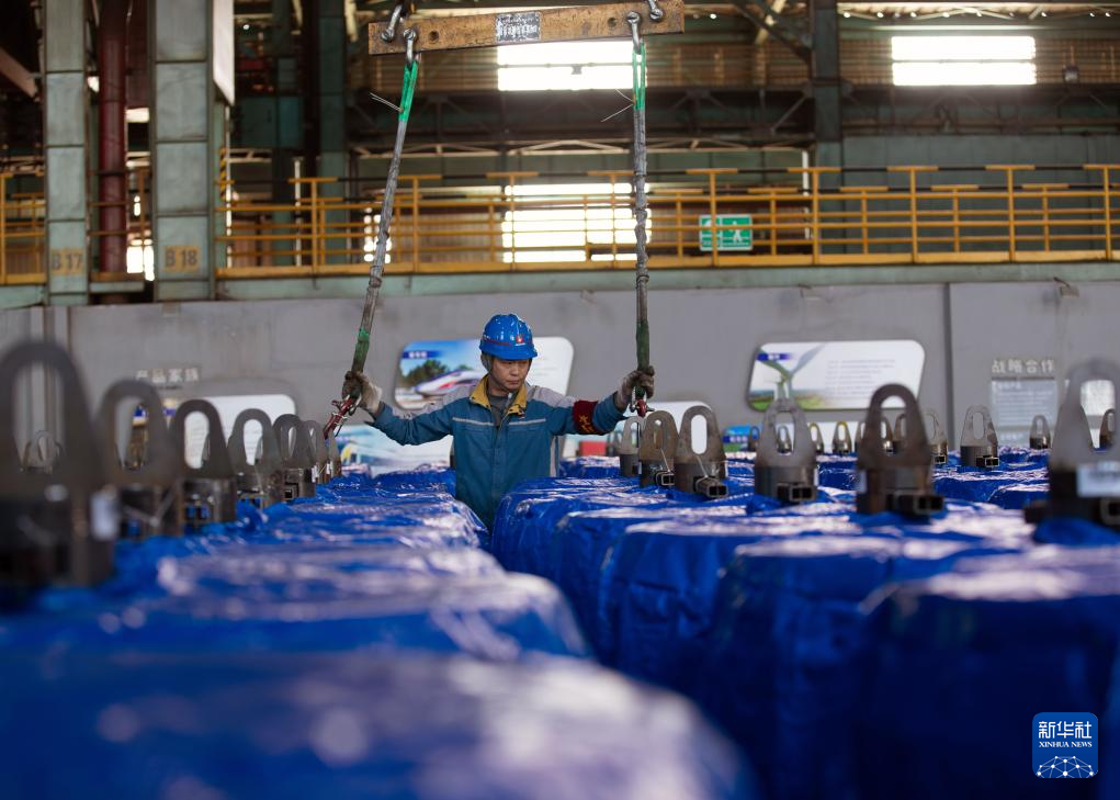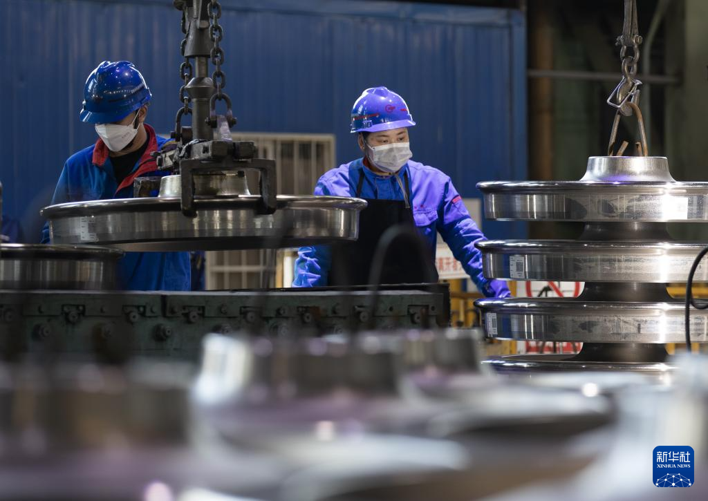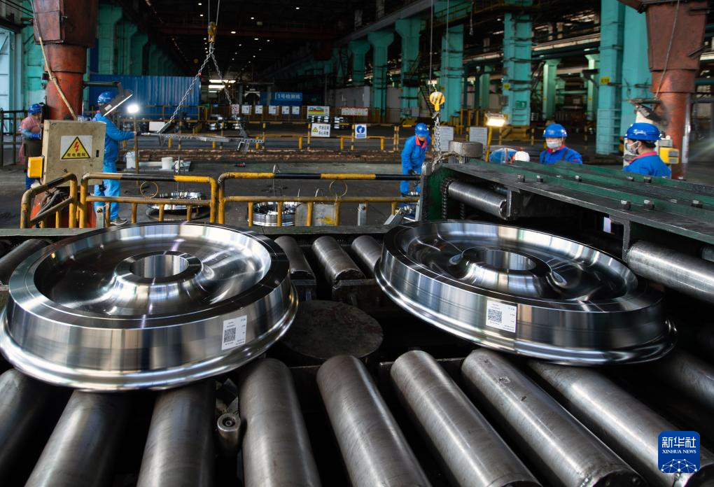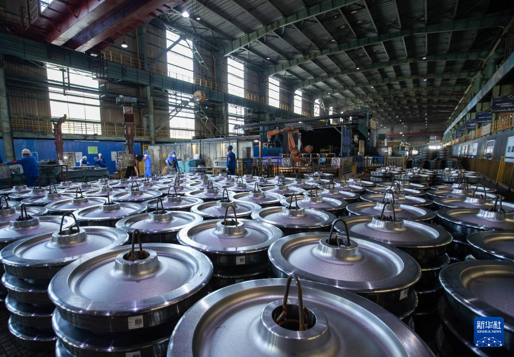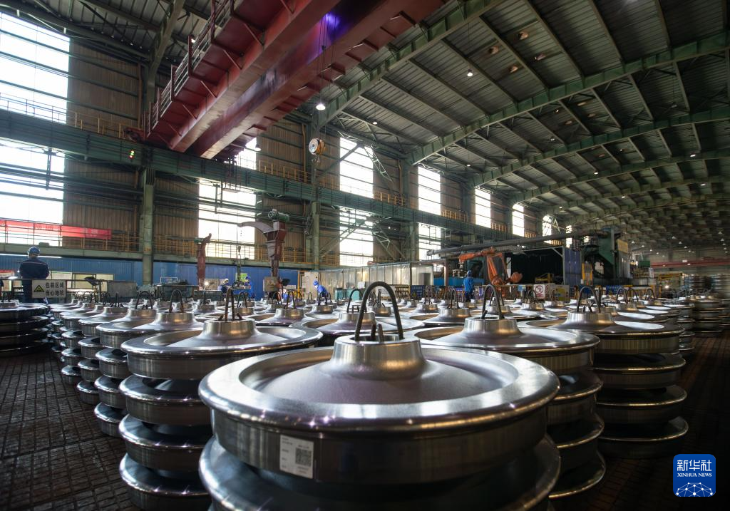 这是11月7日拍摄的宝武集团马钢轨交材料科技股份有限公司的车轮生产线。
