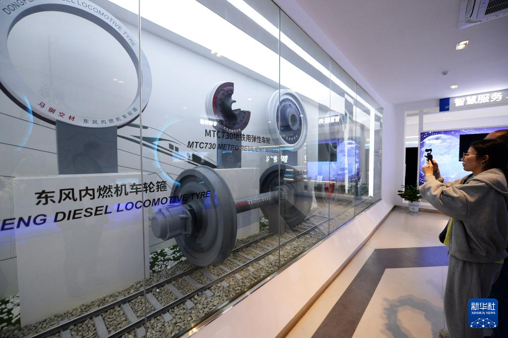 这是11月6日在宝武集团马钢轨交材料科技股份有限公司智慧中心拍摄的车轮展品。