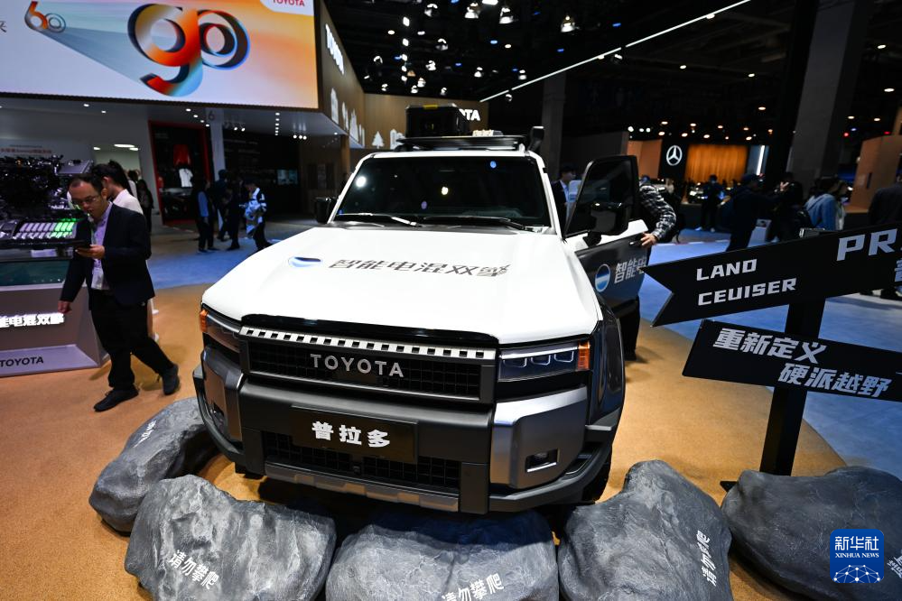 11月7日在第七届进博会汽车展区拍摄的丰田普拉多智能电混车型。