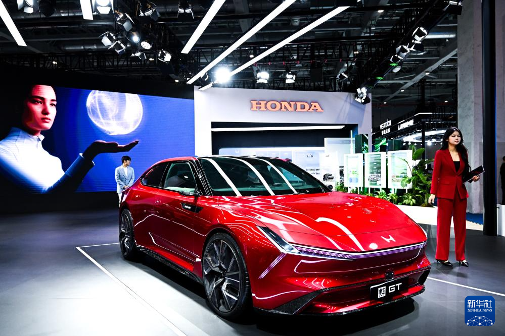 11月7日在第七届进博会汽车展区拍摄的本田电动汽车烨GT车型。