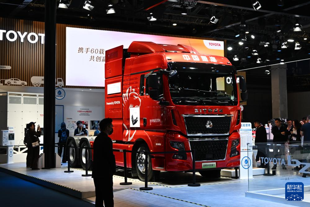 11月7日在第七届进博会汽车展区拍摄的一款氢燃料电池重卡。