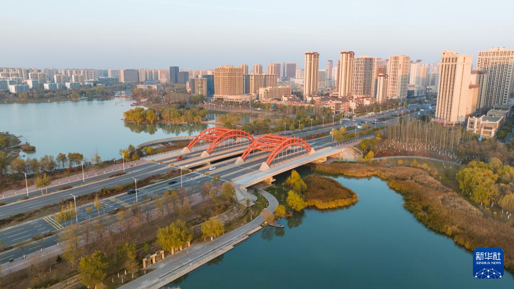 这是11月7日拍摄的兰州新区城市面貌(无人机照片)。