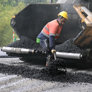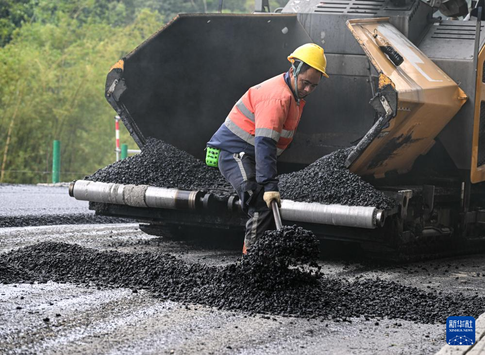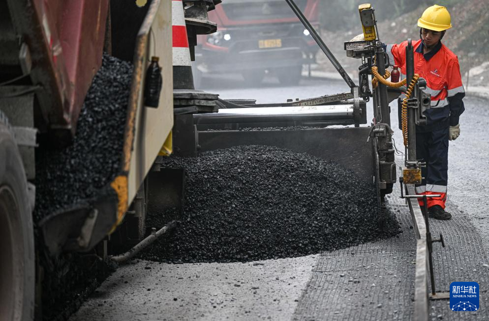 11月6日,中交一公局的工人在海南保亭建设环热带雨林国家公园旅游公路。