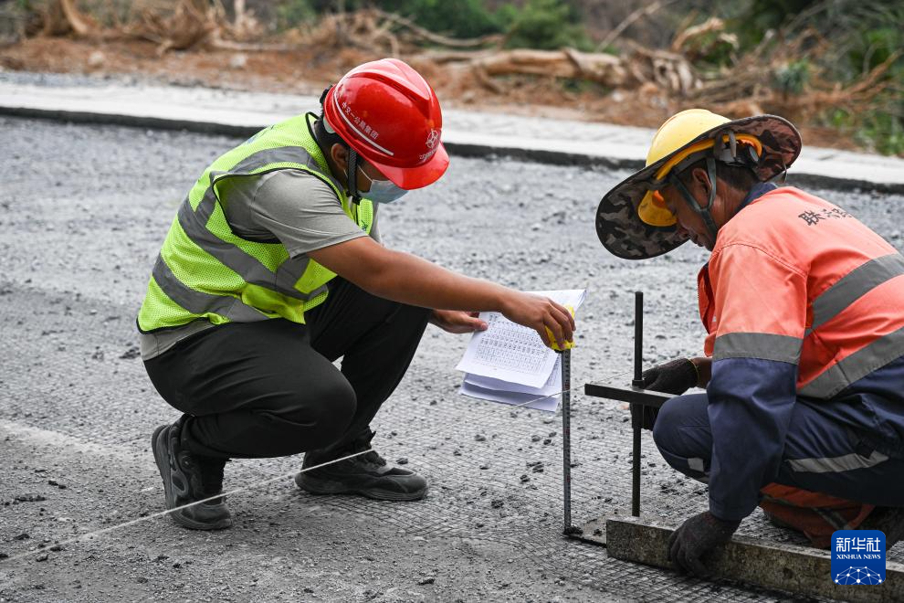 11月6日,中交一公局的技术人员在位于海南保亭的环热带雨林国家公园旅游公路施工现场测量标高。