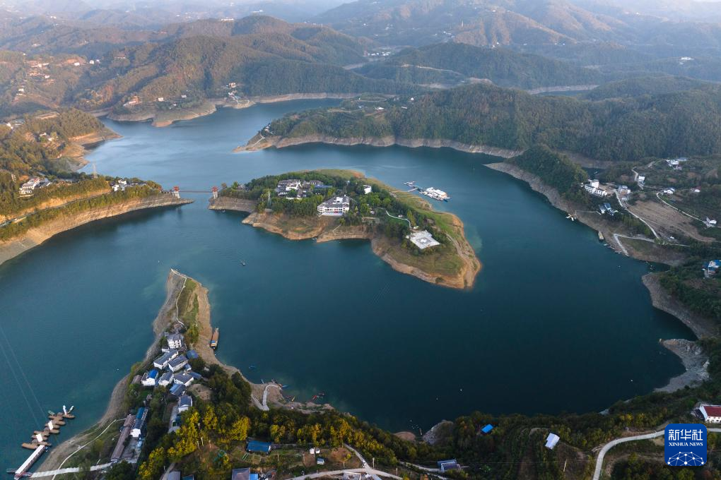 安康汉江瀛湖库区景色(11月2日摄,无人机照片)。