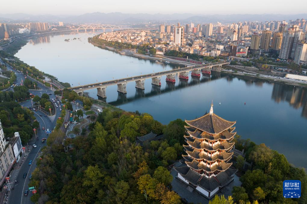 汉江从安康市城区流过(11月5日摄,无人机照片)。
