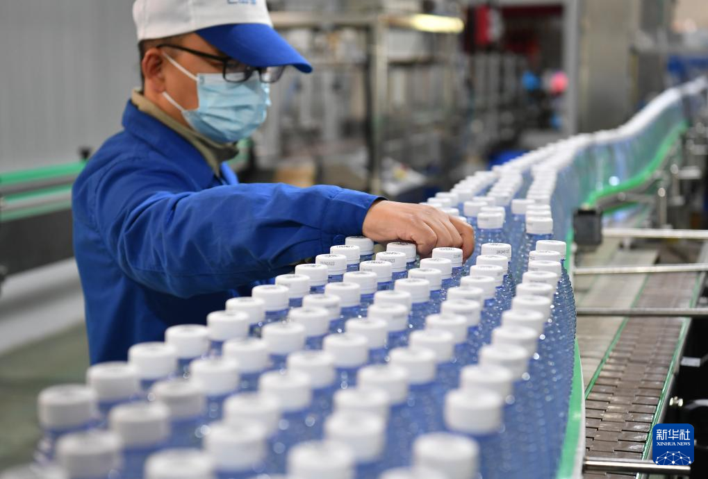 工人在安康市旬阳市一家包装水生产企业车间内工作(10月23日摄)。