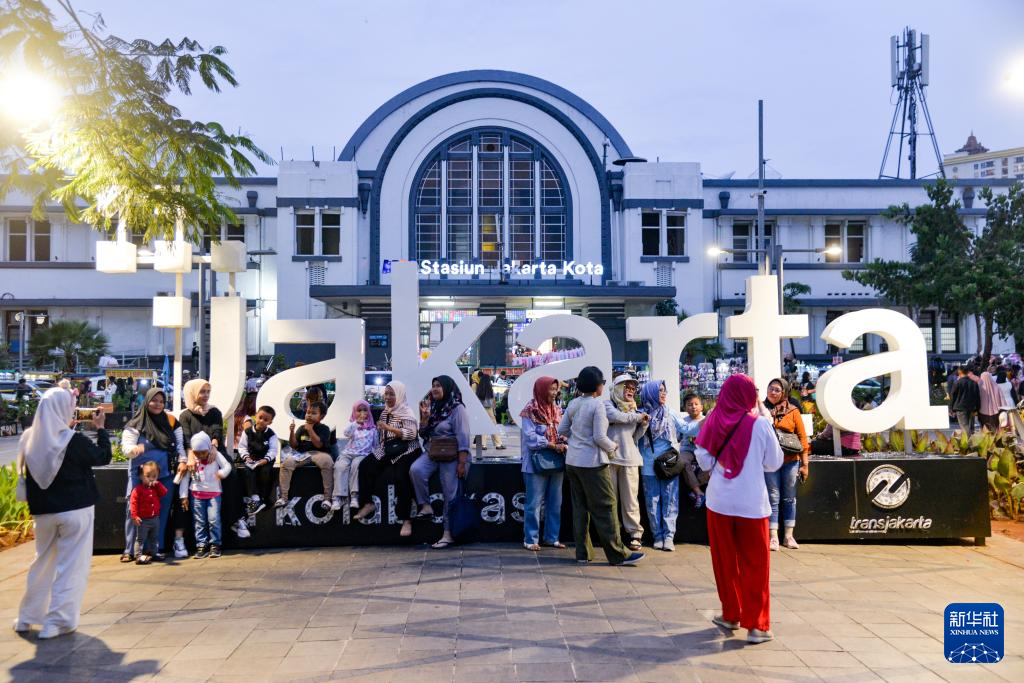 11月2日,在印度尼西亚雅加达,人们在雅加达城火车站前合影。