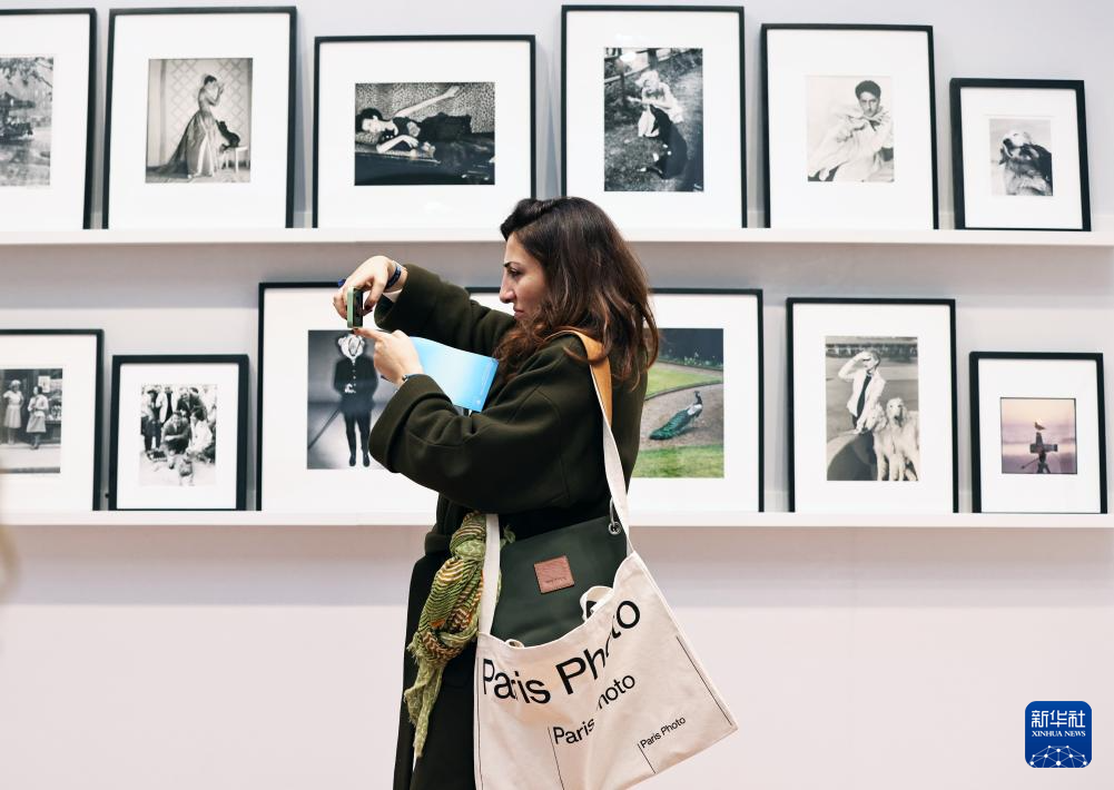 11月6日,一名女子在法国巴黎大皇宫举办的巴黎摄影博览会媒体日上参观。
