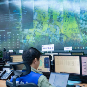 11月7日,工作人员在安徽省城市生命线智慧监管中心值班。
