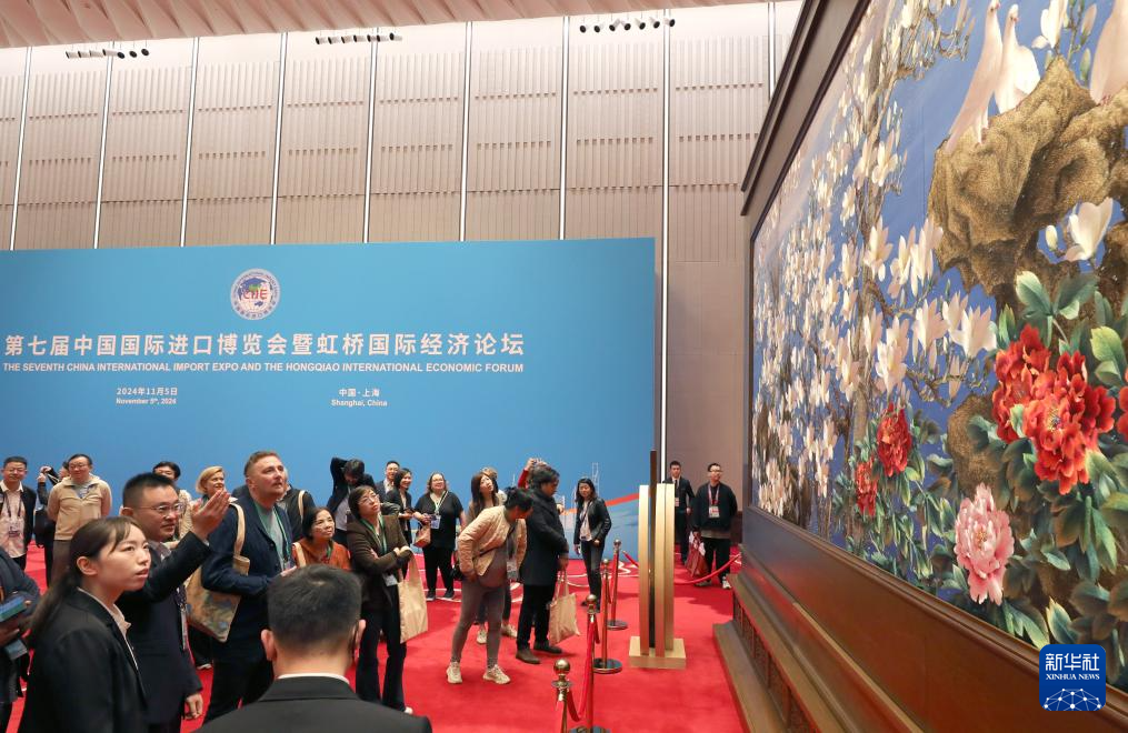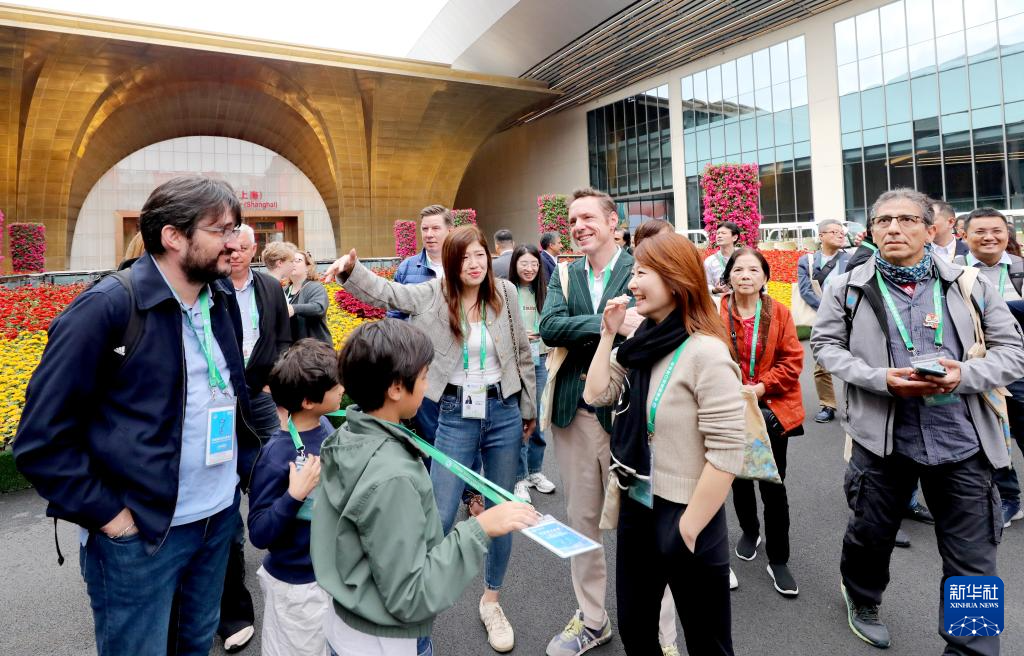 11月9日,“外籍人才看进博”活动团成员在虹桥国际经济论坛举办地国家会议中心(上海)外交谈。