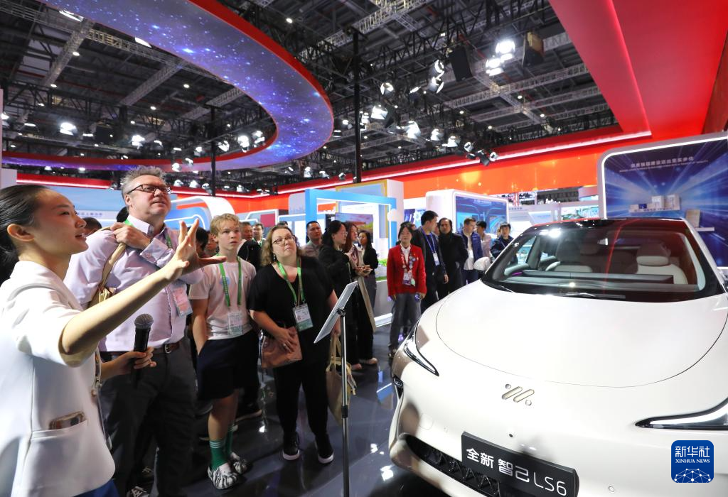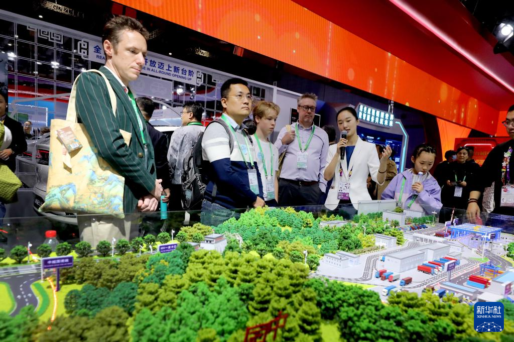 11月9日,“外籍人才看进博”活动团成员在第七届进博会国家展中国馆参观。