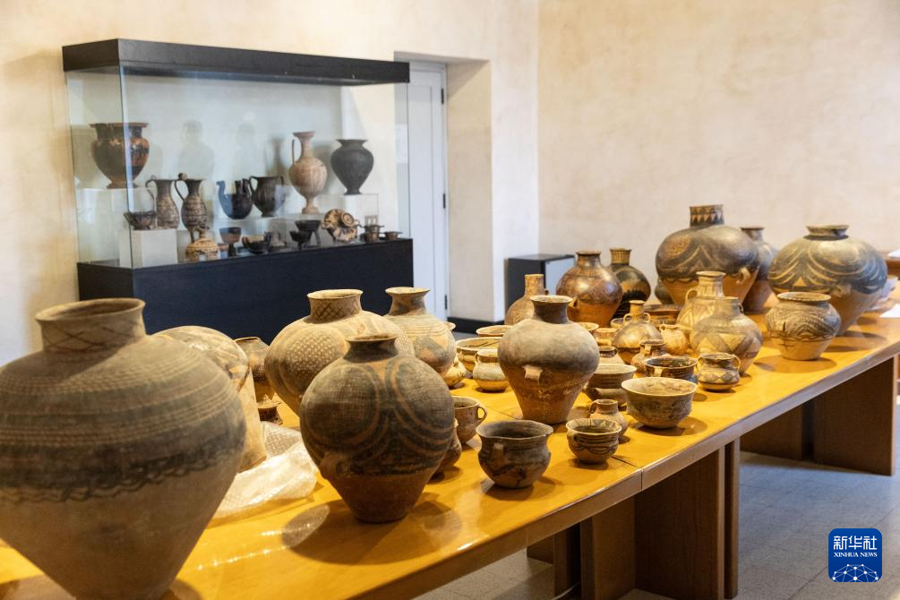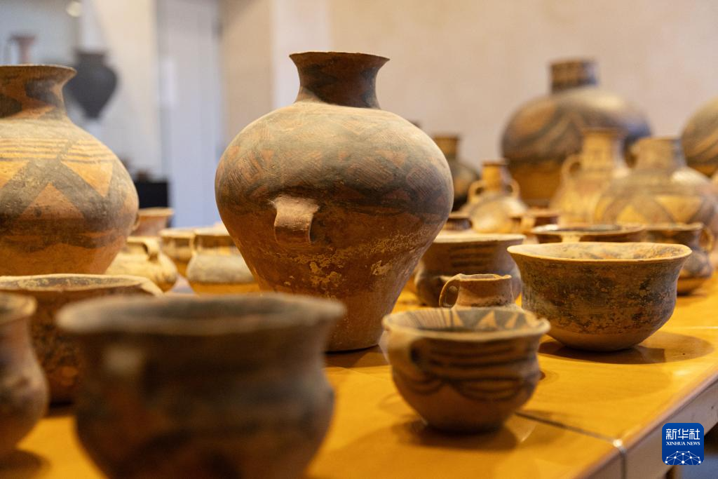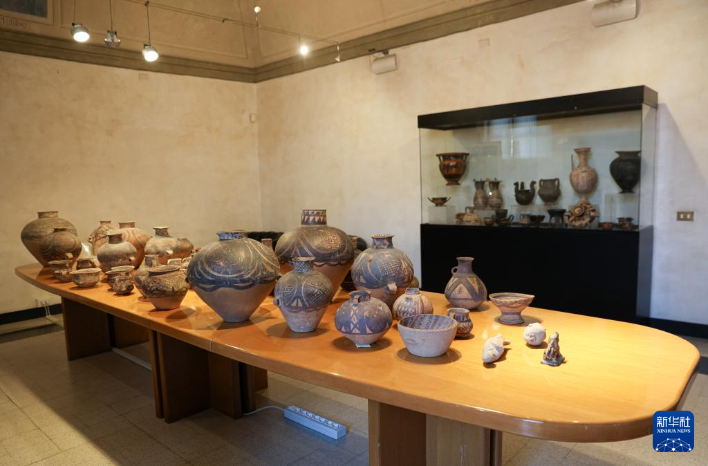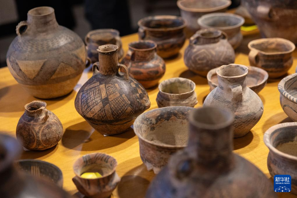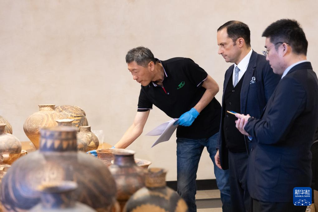 意大利返还中国的新石器时代马家窑彩陶器(11月5日摄)。