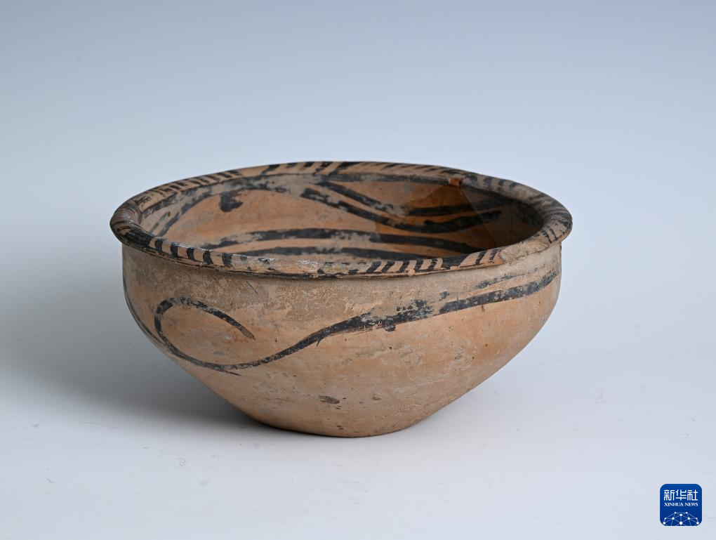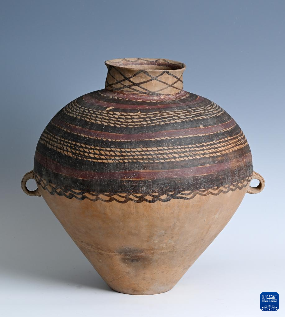 平行锯齿纹双耳彩陶壶(11月5日摄)。