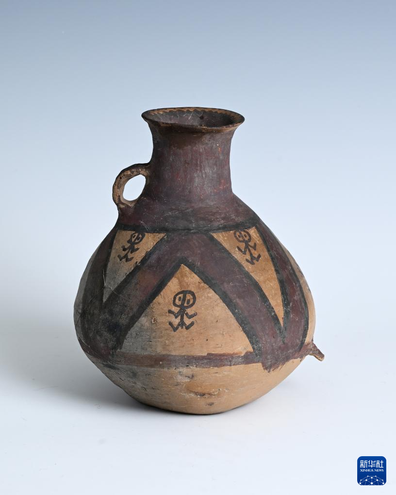 折带人形纹高低耳彩陶壶(11月5日摄)。