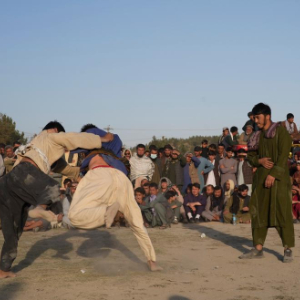 每逢周五下午,在阿富汗首都喀布尔市的一处公园内,都会聚集一批摔跤爱好者进行传统摔跤比赛,吸引许多居民前来观看。阿富汗的传统摔跤比赛是当地民众喜爱的一项运动,有较强的对抗性和观赏性。