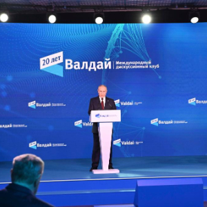 11月7日,俄罗斯总统普京在索契举办的瓦尔代国际辩论俱乐部年会上发表讲话。