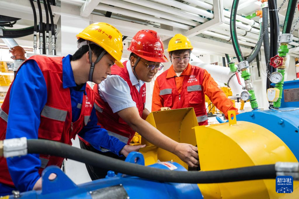 11月9日,在铁建重工长沙第一产业园,工人在调试“永庆号”盾构机。
