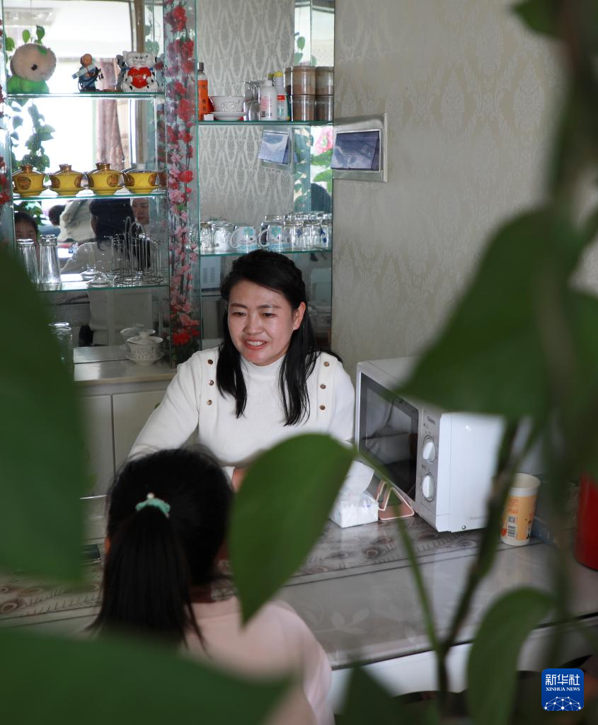 11月9日,甘肃省张掖市甘州区幸福村的“爱心妈妈”刘敏与自己帮扶的困境儿童交流。