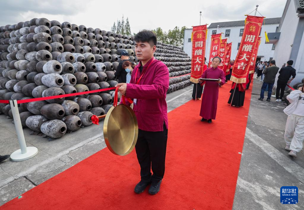 当日,浙江嘉兴的百年酒厂海盐沈荡酿造举行立冬黄酒开酿仪式。传统黄酒酿造工序包括立冬开酿、蒸煮米饭、落缸加药、拌匀搭窝、两次喂饭、陶缸前酵、露天后酵等工艺流程,到立春出酒。