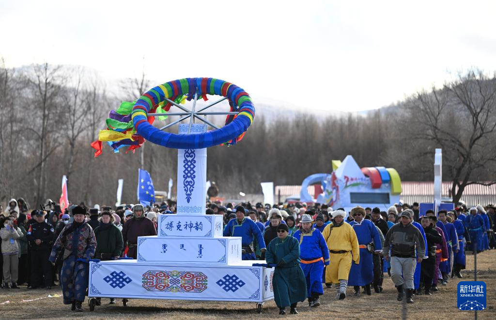 11月10日,守边牧民在冰雪那达慕上入场。