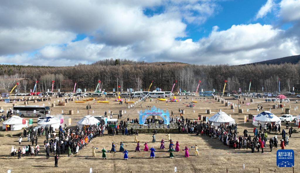 11月10日,2024兴安盟“童话阿尔山·冰雪那达慕”在内蒙古兴安盟阿尔山市森林牧场举行(无人机照片)。