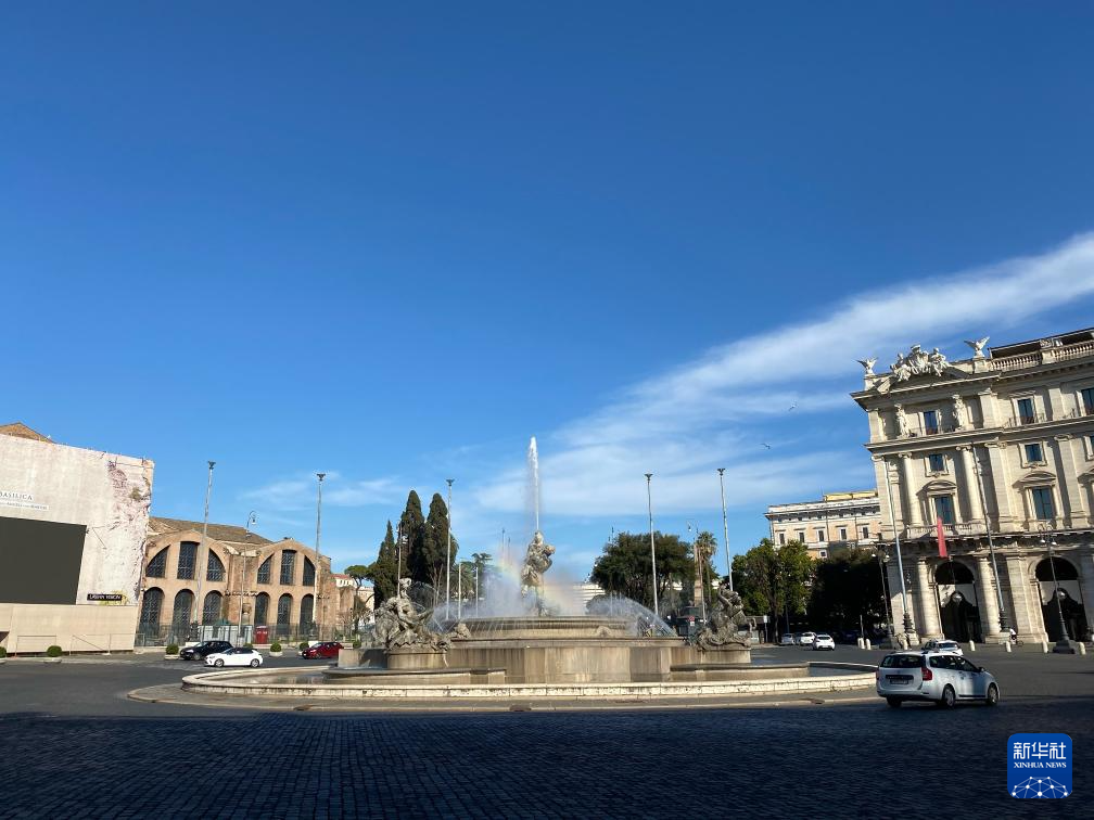 这是2021年4月25日在意大利罗马拍摄的共和国广场(手机照片)。