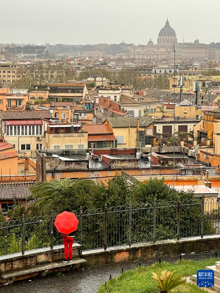 这是2022年3月30日在意大利罗马的博尔盖塞公园拍摄的城市景观(手机照片)。
