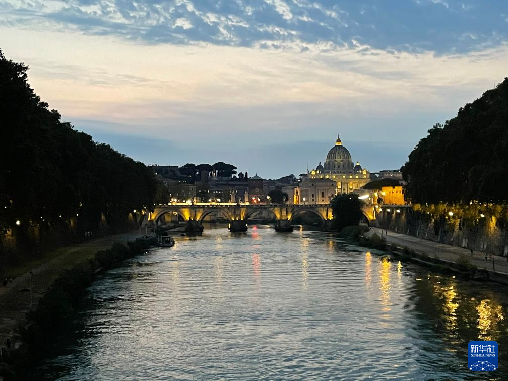 这是2021年10月4日在意大利罗马拍摄的台伯河夜景(手机照片)。