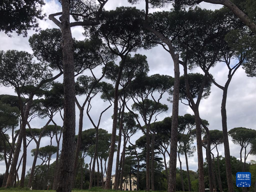 这是2024年4月22日在意大利罗马博尔盖塞公园拍摄的伞松(手机照片)。