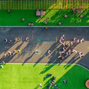 11月11日,在长春市第一实验银河小学,学生在操场上进行课间活动(无人机照片)。