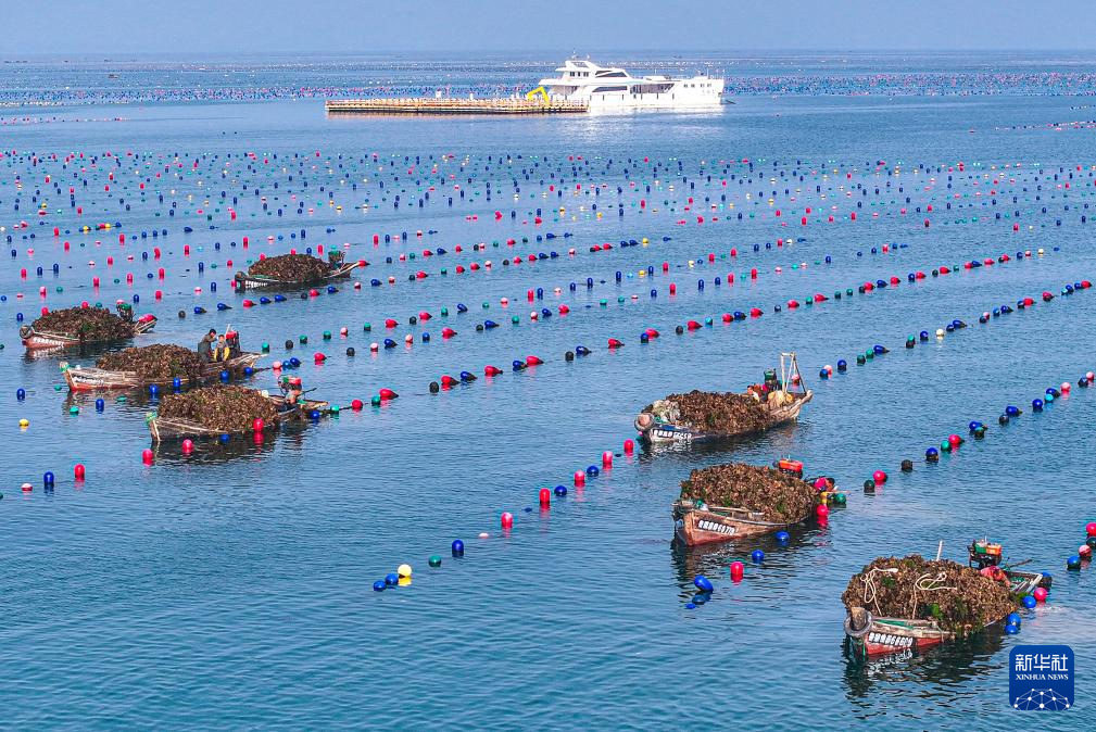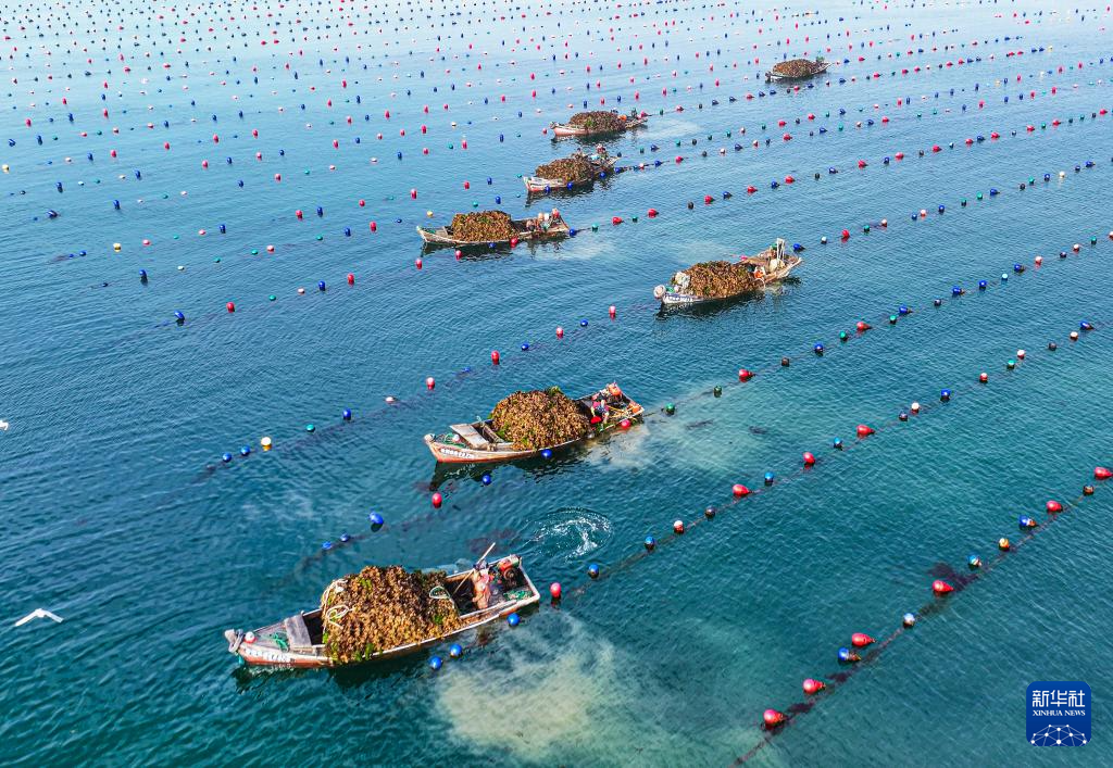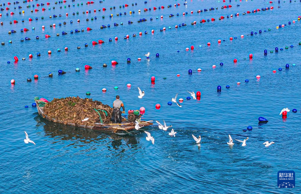 连日来,山东省荣成市石岛管理区桑沟湾海洋牧场迎来牡蛎收获季,当地渔民抓紧采收牡蛎,供应市场。