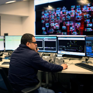 10月12日,在位于利马的秘鲁博路兹公司电力调度控制中心,当地员工开展日常电网监控工作。