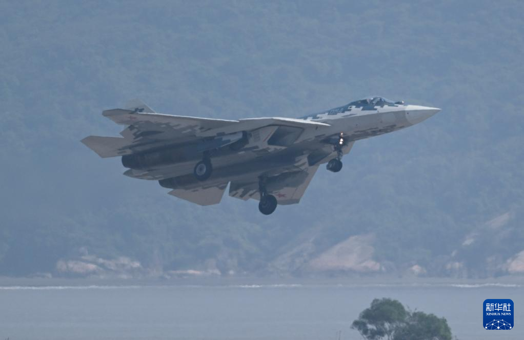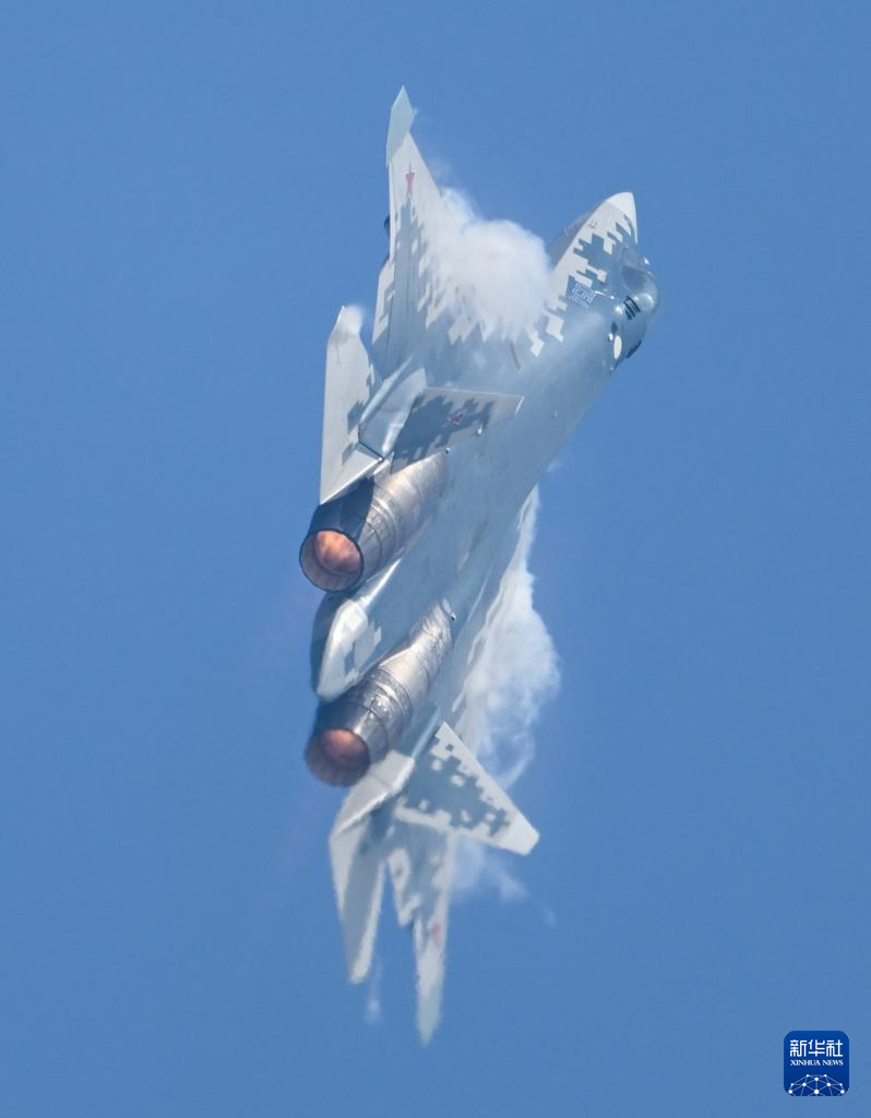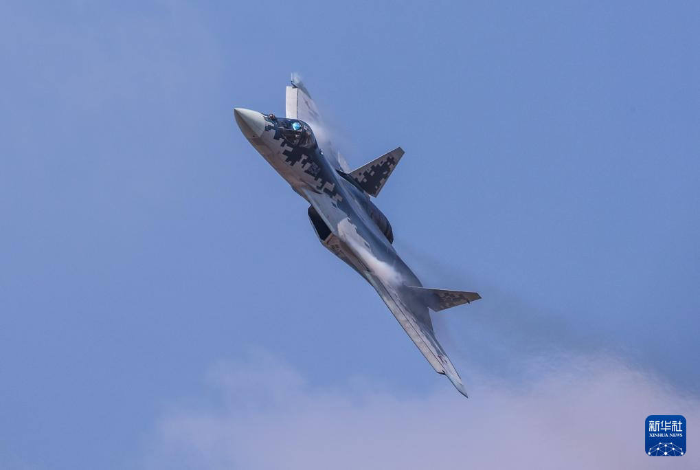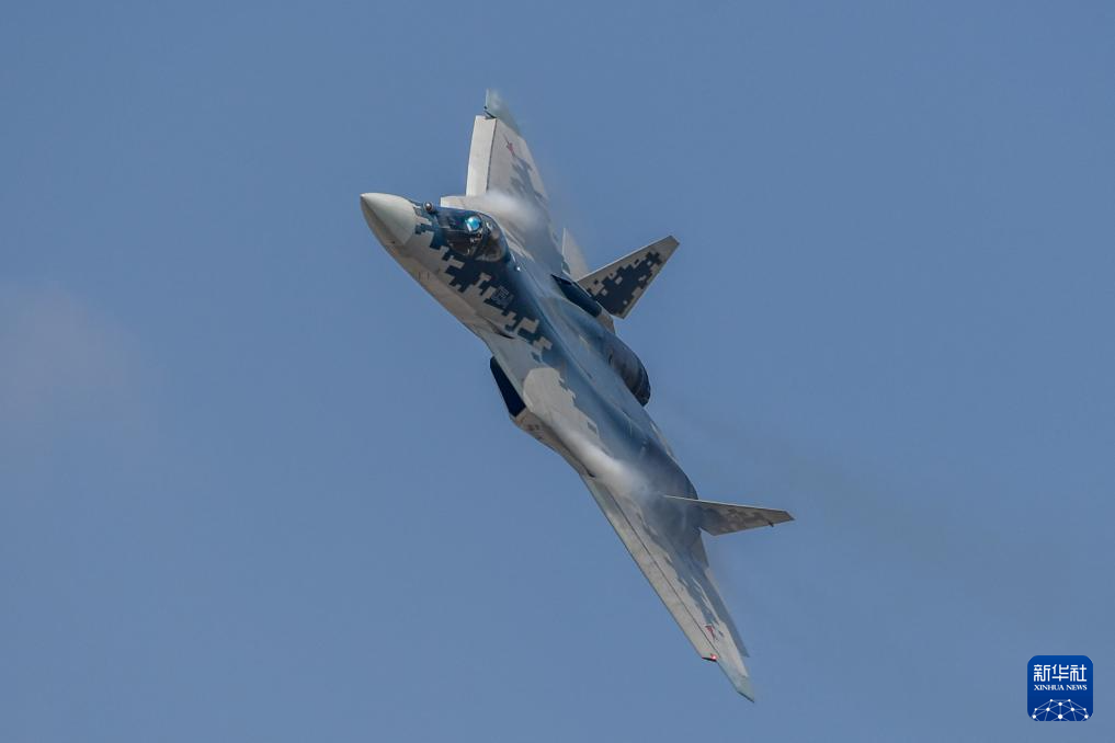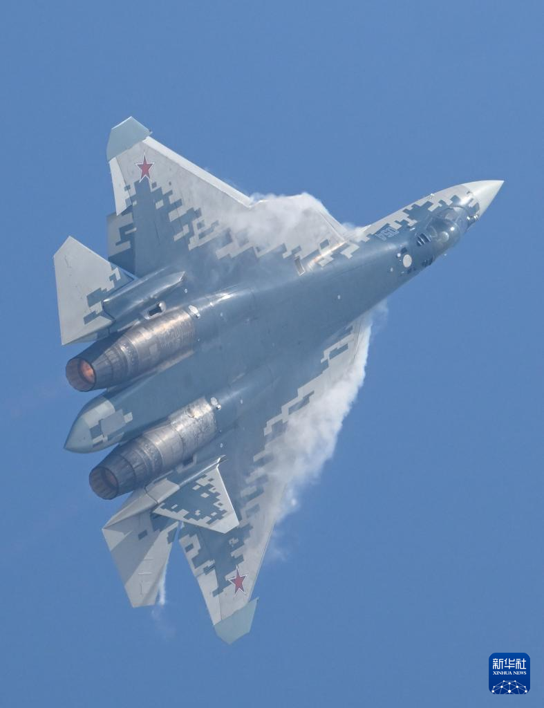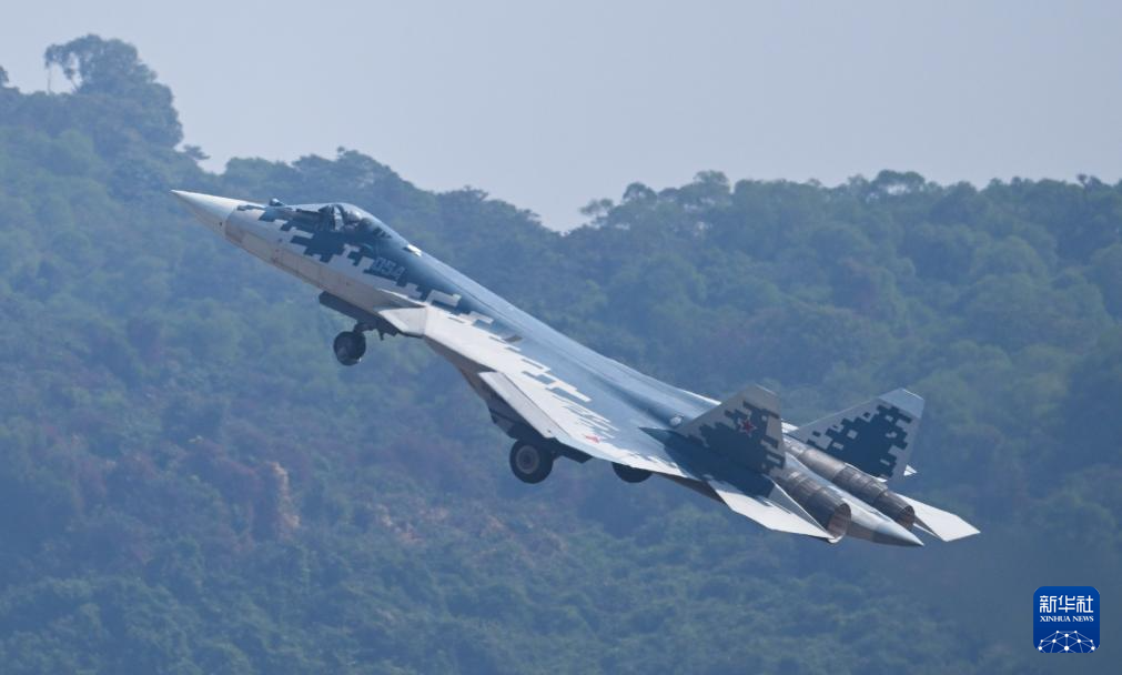11月12日,俄罗斯苏-57战机在珠海航展上进行飞行表演。