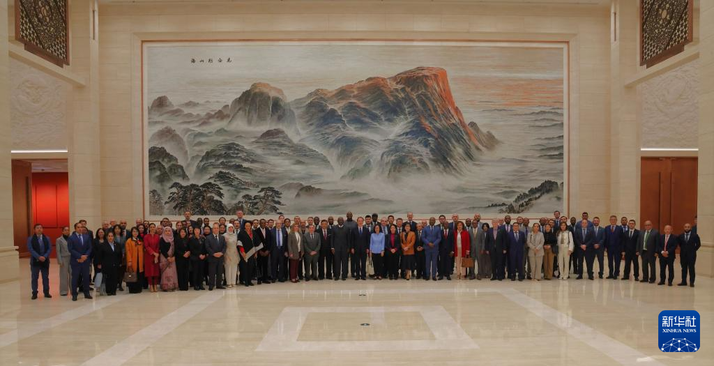 当日,来自南非、蒙古国等国家和国际组织的约百位驻华使节,应外交部礼宾司邀请来到中央礼品文物管理中心,参观“友好往来 命运与共——党和国家领导人外交活动礼品展”。