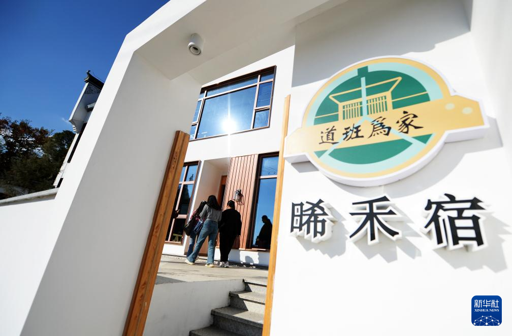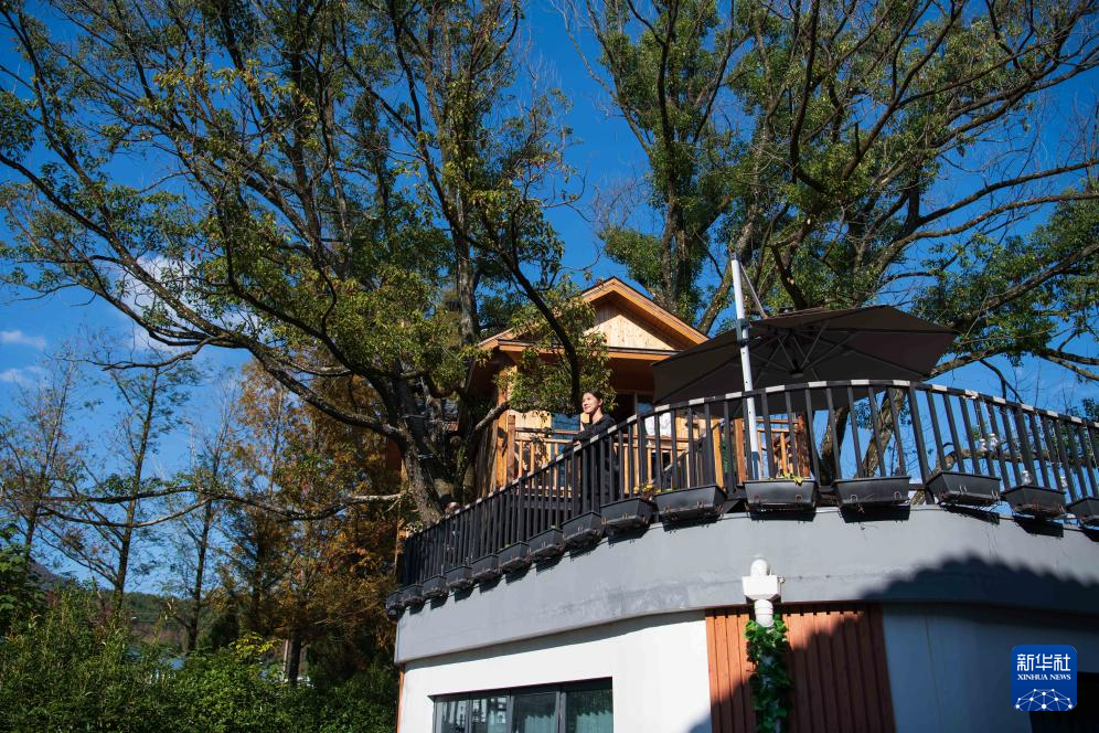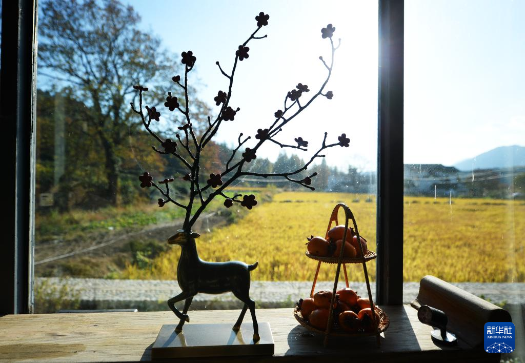11月11日,一位女士在安徽省黄山市黟县一处乡村特色民宿休憩。
