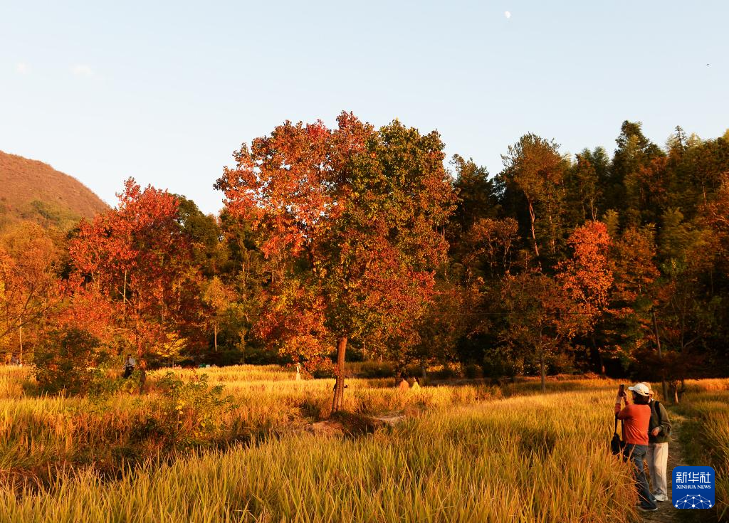 11月11日,游客在安徽省黄山市黟县塔川村游玩。