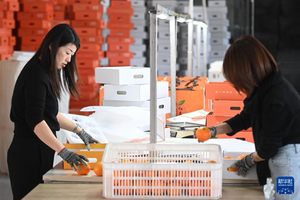11月13日,在南浔区练市镇西堡村“红美人”可持续发展示范园,工作人员在分拣、包装“红美人”柑橘。当地依托柑橘种植,带动23个村集体年增收400多万元,为农户提供400余个就业岗位,人均年增收超3万元。