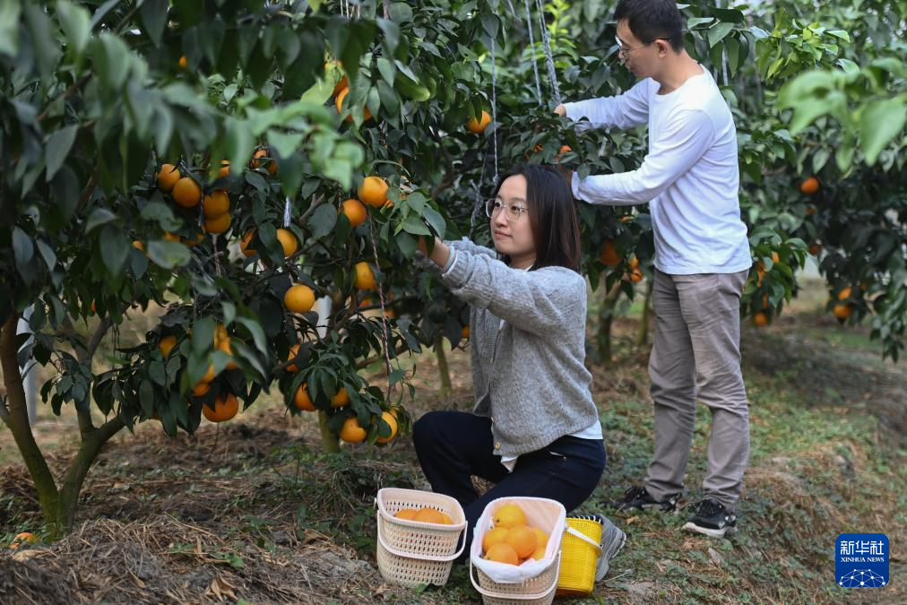 初冬时节,浙江省湖州市南浔区练市镇西堡村“红美人”可持续发展示范园的“红美人”柑橘迎来收获季,吸引大批游客前来采摘。