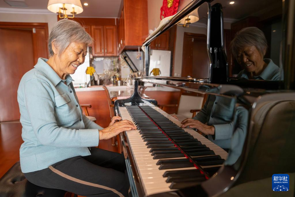 11月11日,在日照市泰安路社区养老服务中心(日照颐养健康中心),一名老人在自己居室中弹钢琴。