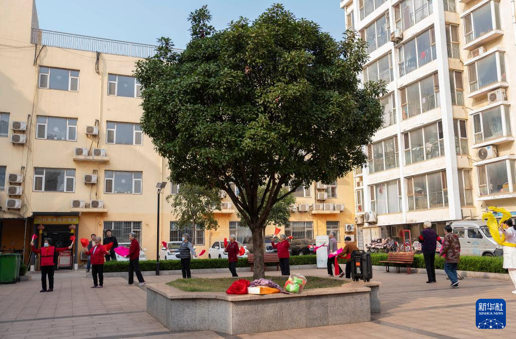 11月11日,在提供综合养老服务的日照中盛幸福苑,老人在室外扭秧歌。