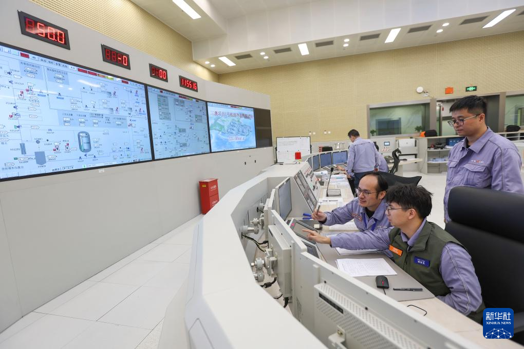 11月13日,在浙江省温州市苍南县中广核浙江三澳核电项目1号机组中控室,工作人员执行冷试操作。