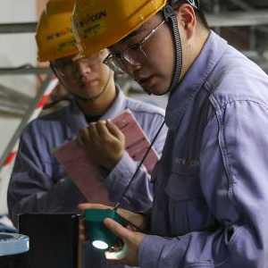 11月13日,在浙江省温州市苍南县中广核浙江三澳核电项目1号机组处,工作人员在检查机柜。